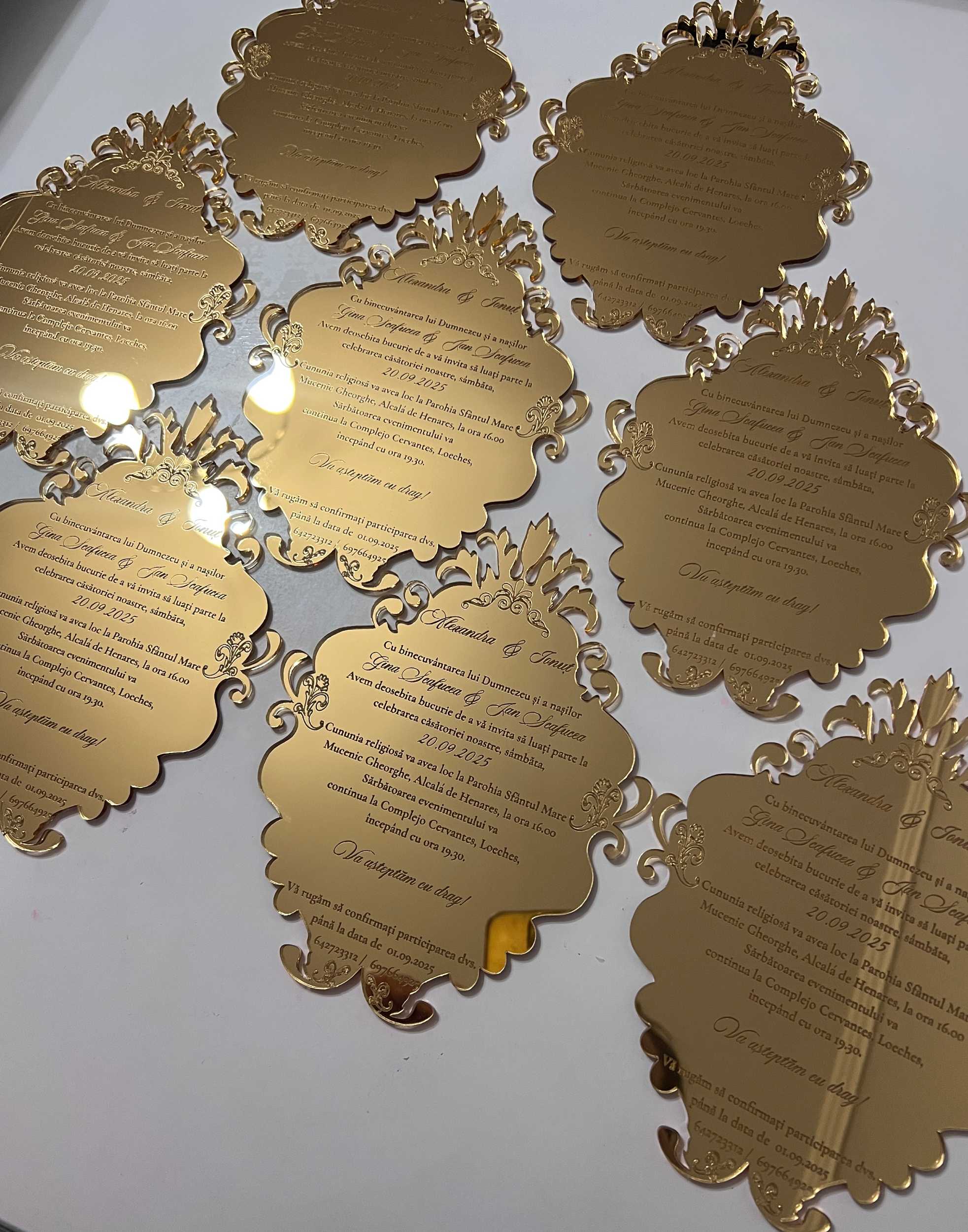 Fii primul care lasă recenzie pentru "Invitație de nuntă din plexiglas auriu"