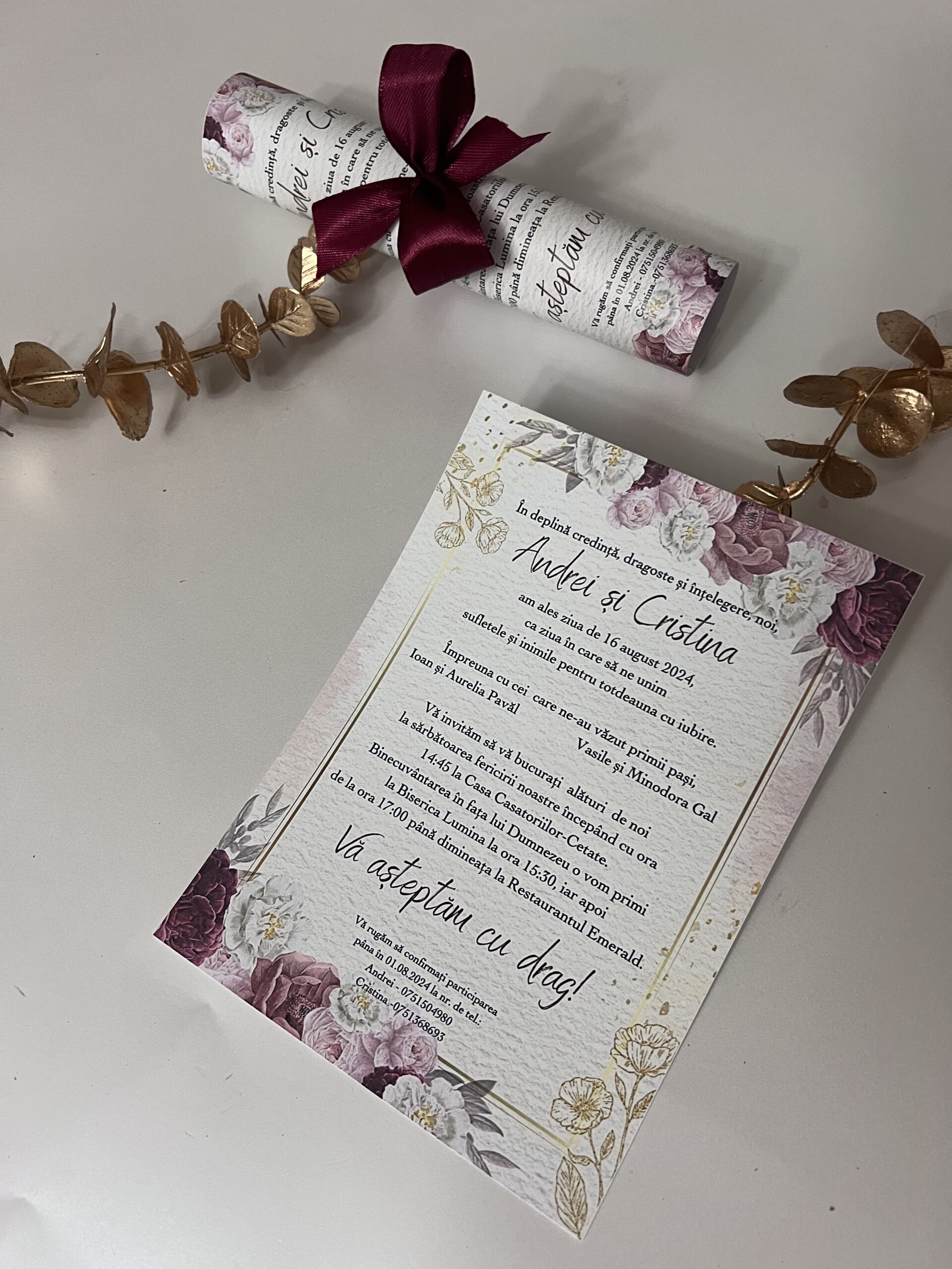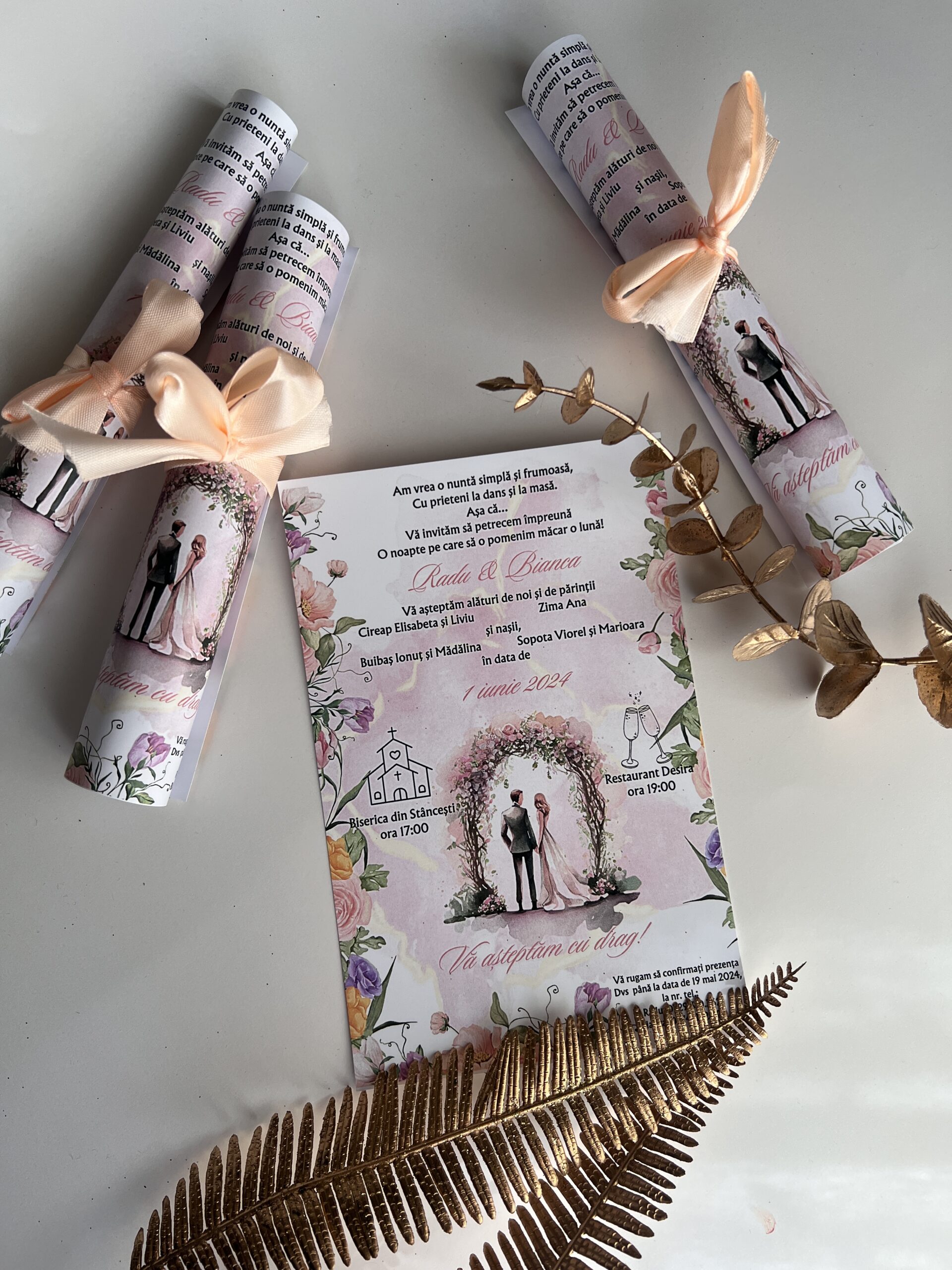 Invitație de nuntă rulată