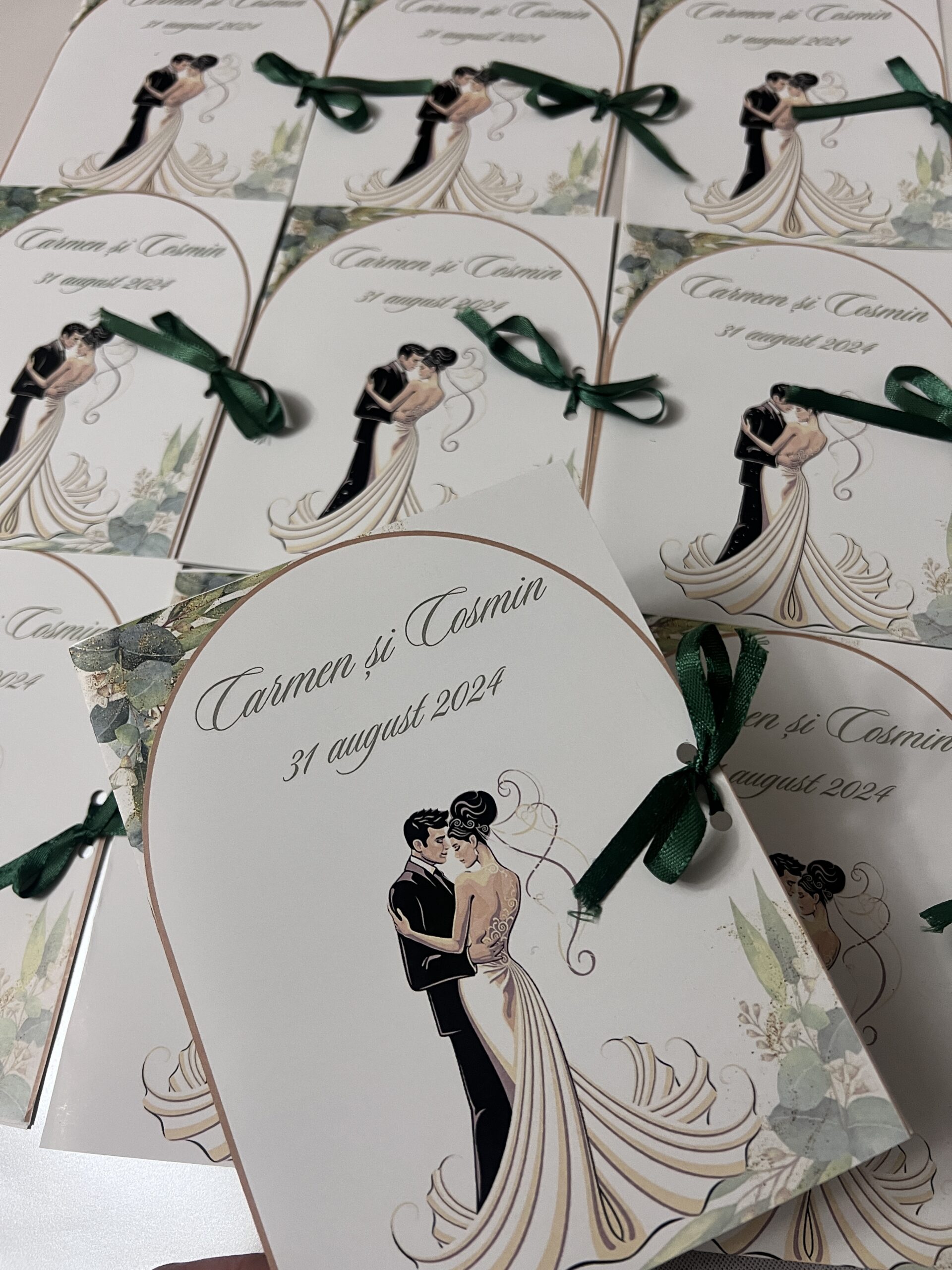 Invitația de nuntă tip cărticică – design unic, personalizat, perfect pentru o poveste specială.